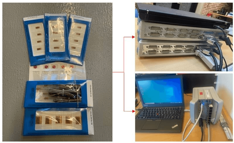 After bonding the strain gauges in the region of interest on the specimen(s), the strain gauges can be connected either to the spiders which are working with CATMAN Easy software or Q.brixx system which is coupled with GI.bench data acquisition software.