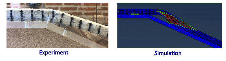 Automatic placement of fiber-binder preforms in the blade mould may introduce wrinkle defects if it is not handled correctly. Wrinkles are known to cause severe knockdown on the strength of wind turbine blades. The aim of this project is to predict the creation of wrinkles in fiber-binder preforms during forming and investigate the effect of process parameters on wrinkle characteristics and severity. During this project several interesting technical aspects needs to be addressed. Among other things, the model should be capable of describing the very specific behavior of dry fiber reinforcement, and the binder interface in-between plies needs to be characterized and modelled, to accurately describe the wrinkle mechanisms.